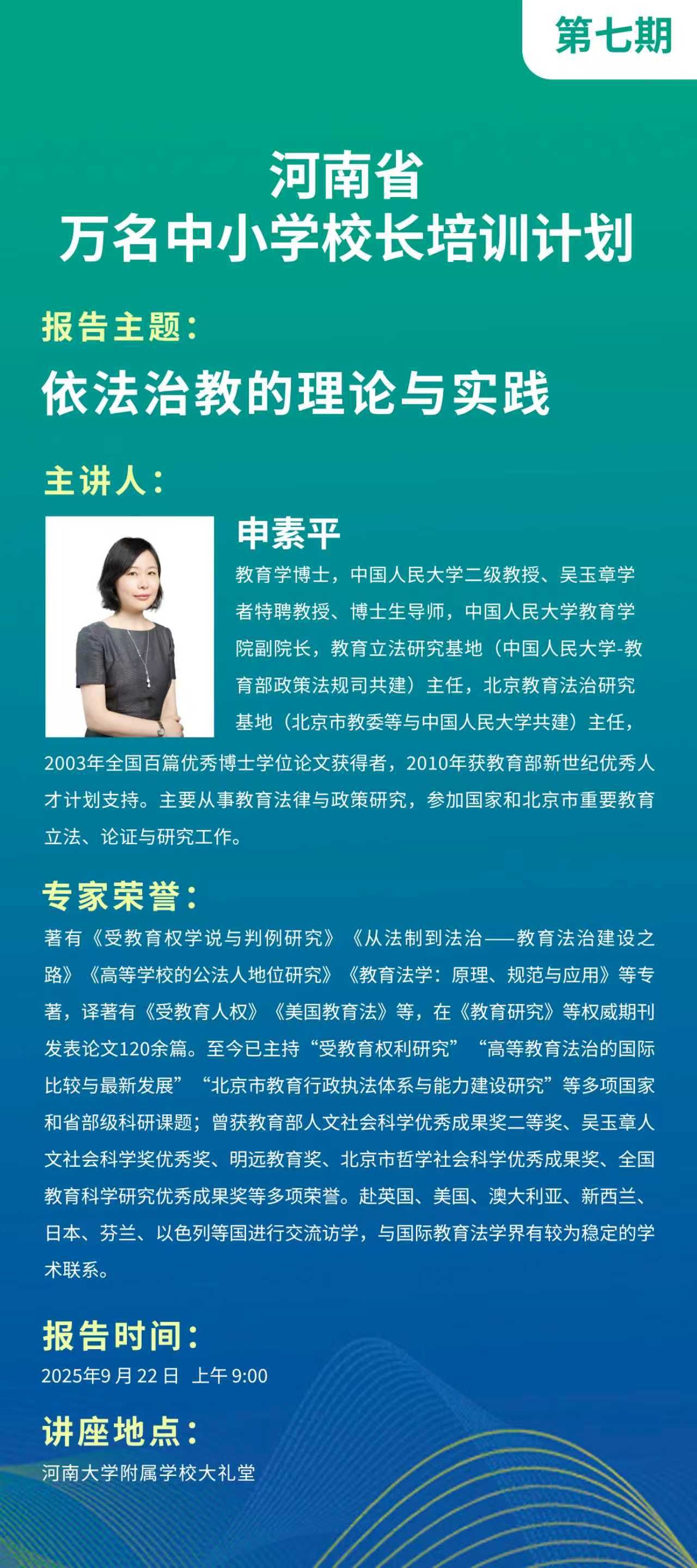 第七期“名家讲座”预告 | 申素平:依法治教的理论与实践
