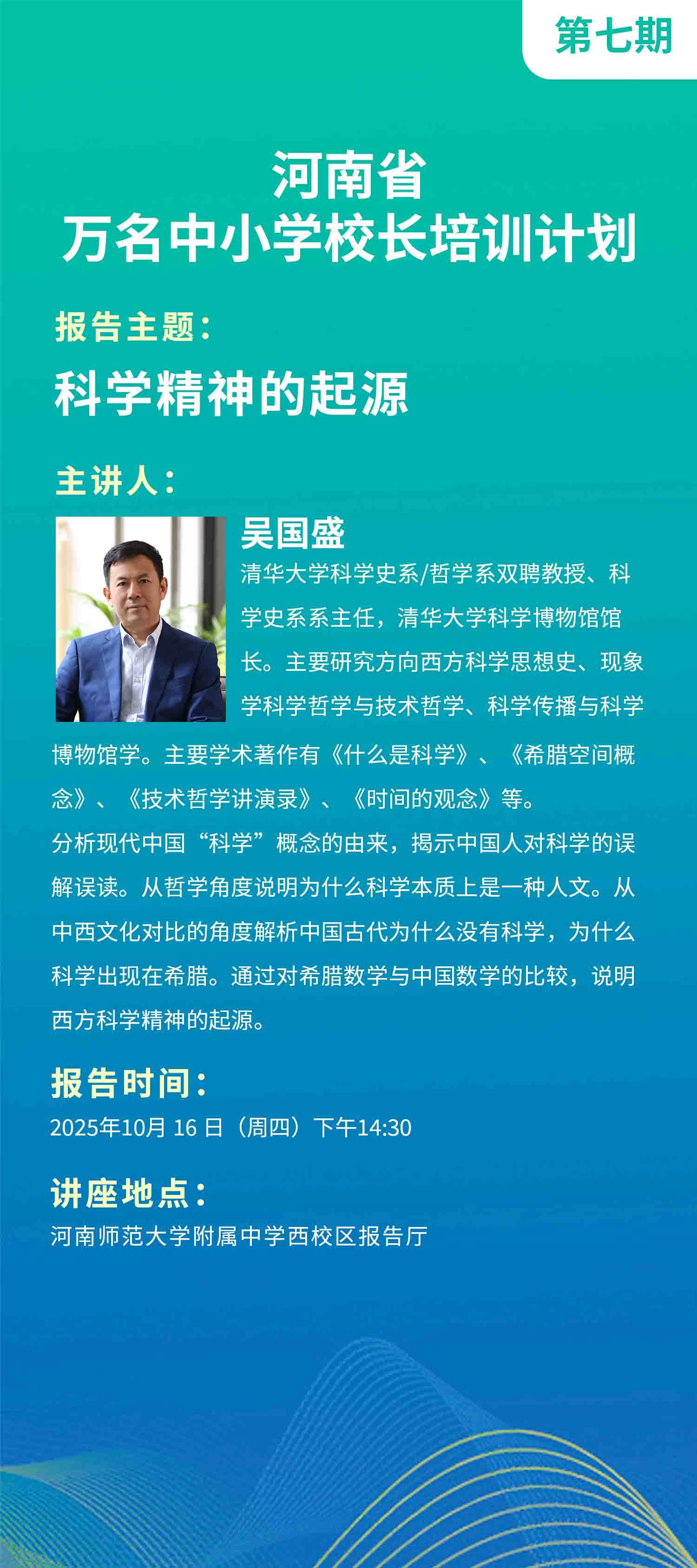 第七期“名家讲座”预告 | 吴国盛:科学精神的起源