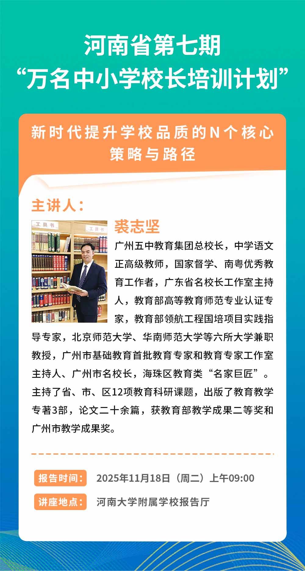 第七期“名家讲座”预告 | 裘志坚:新时代提升学校品质的N个核心策略与路径