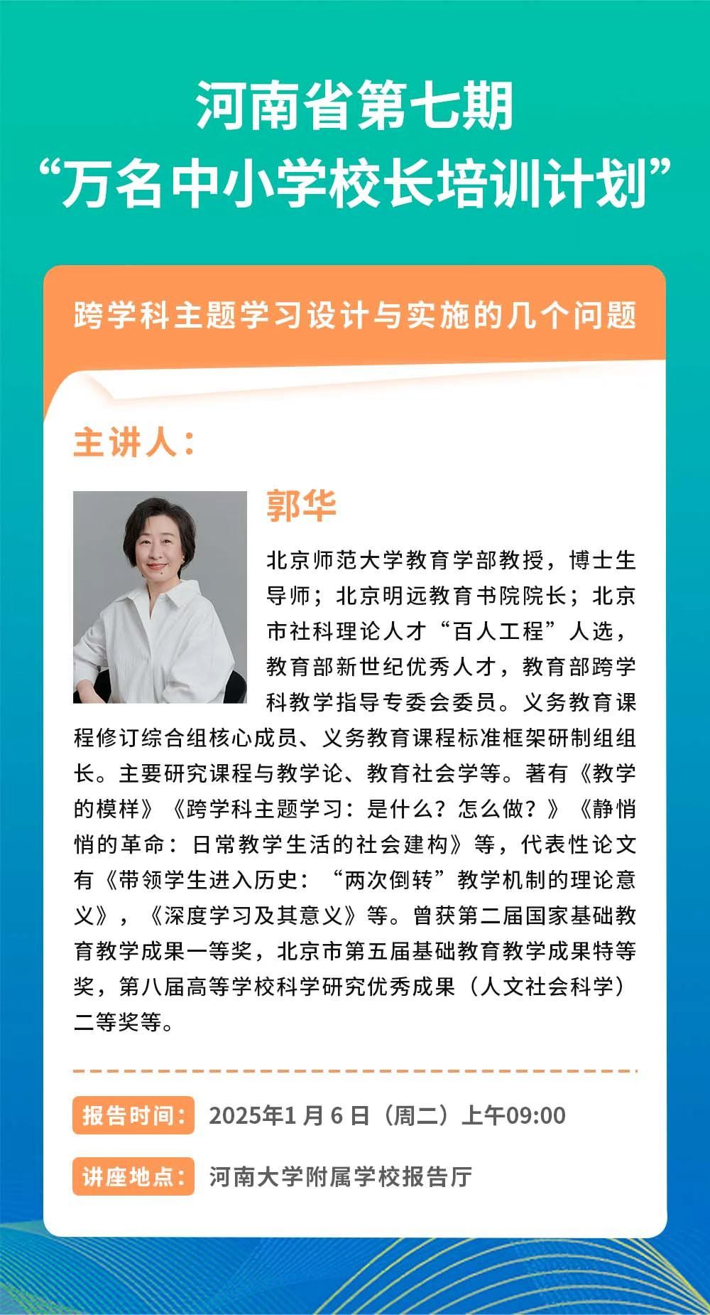 第七期“名家讲座”预告 | 郭华:跨学科主题学习设计与实施的几个问题