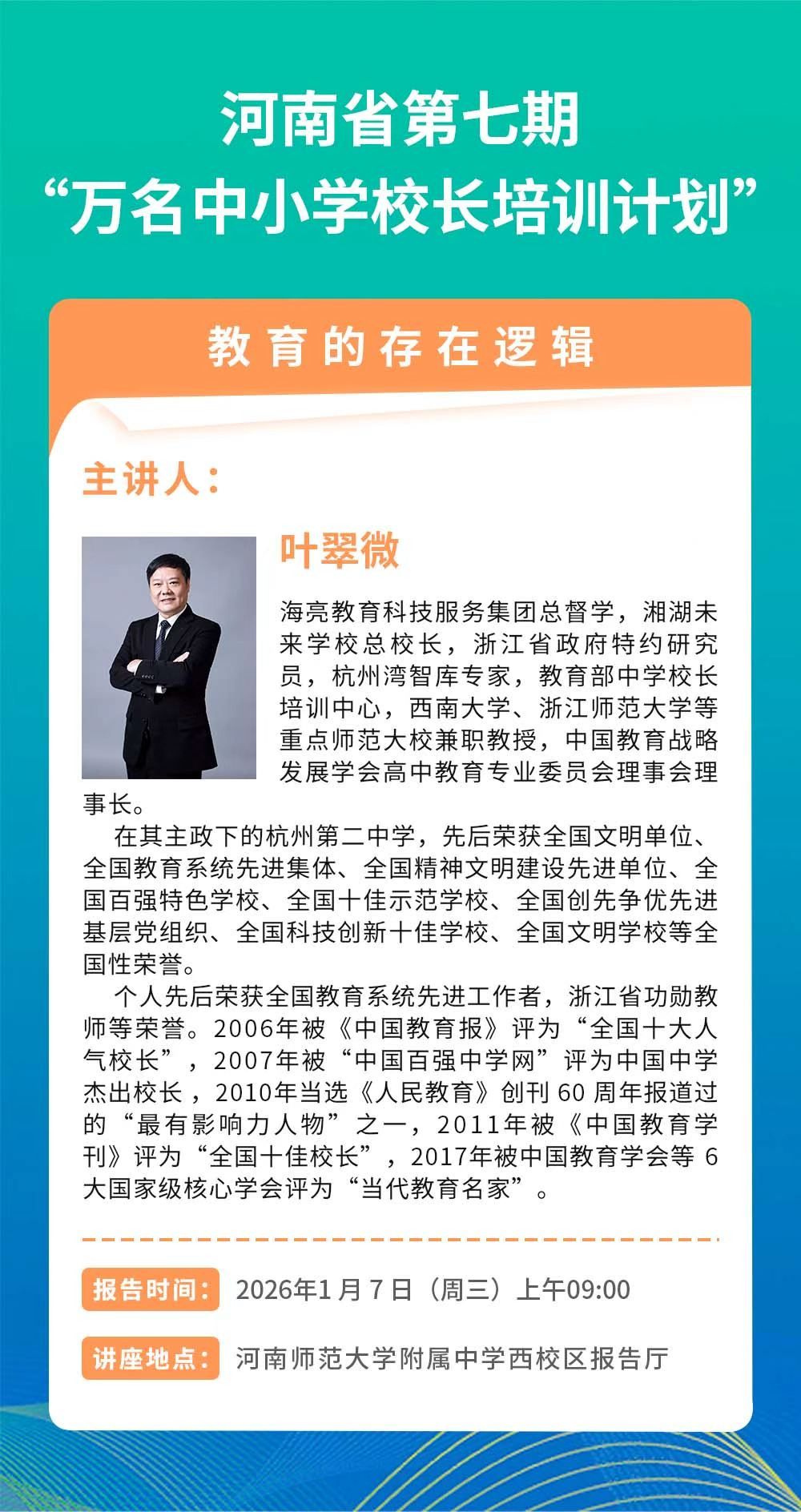 第七期“名家讲座”预告 | 叶翠微:教育的存在逻辑
