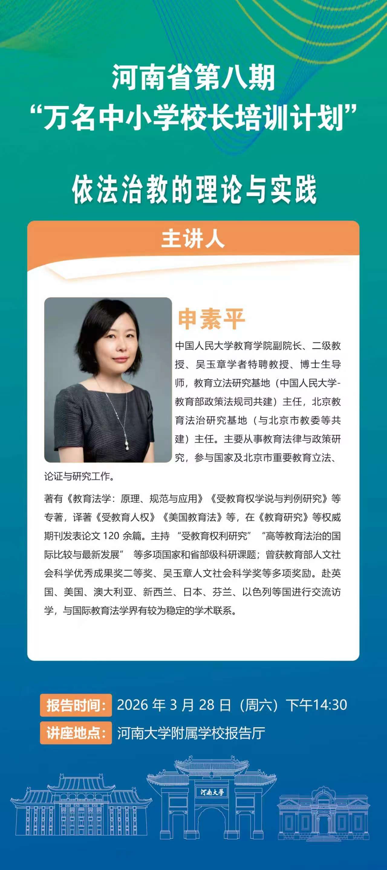 第八期“名家讲座”预告|申素平:依法治教的理论与实践